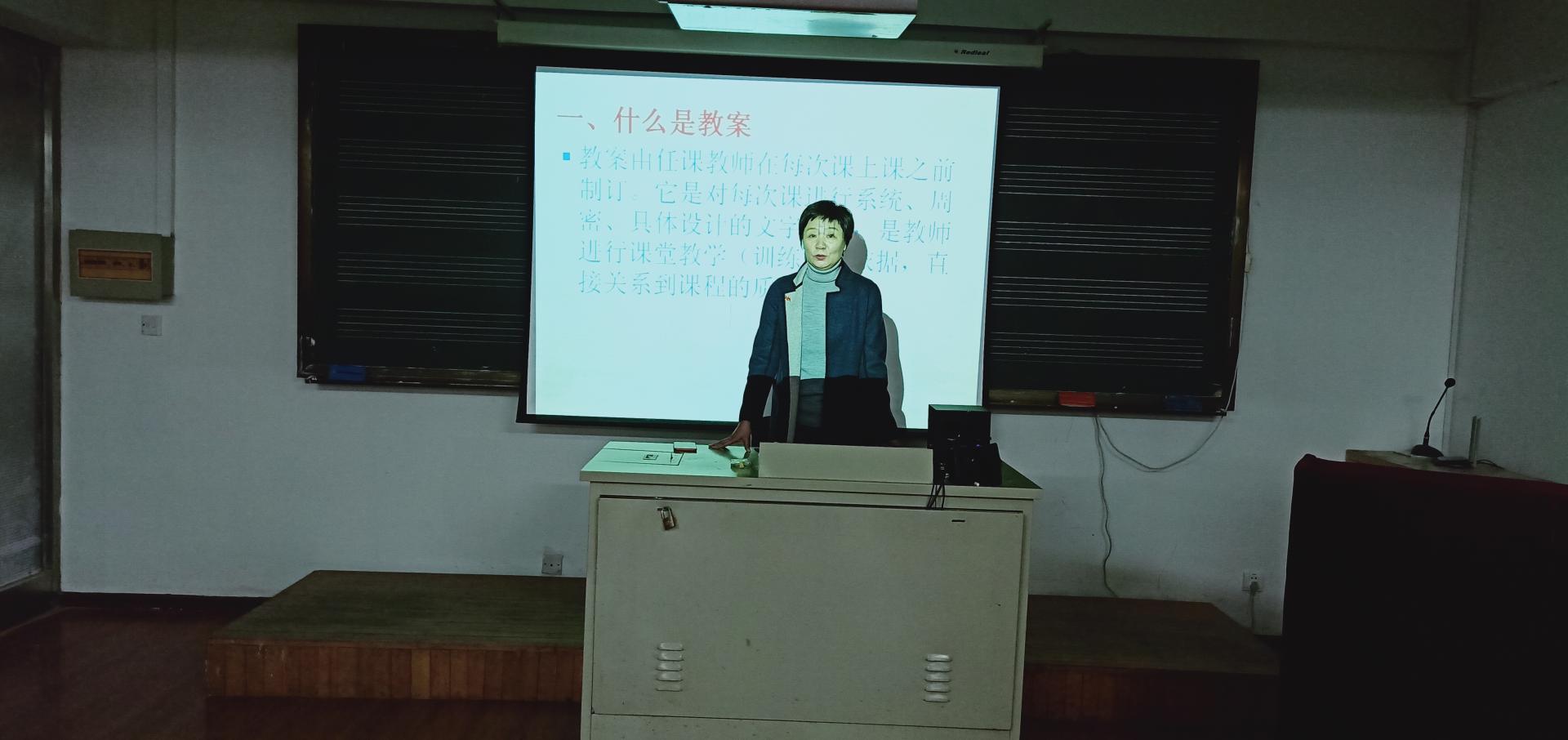 健美操与体育舞蹈教研室主任冯晓辉教授就术科教案规范撰写结合实际案例,为全体教师做辅导培训。