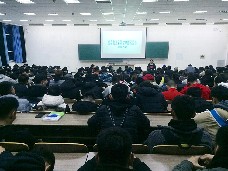 要求,体育教育学院通过召开全体教师大会,学工干部大会,使全院上下统一思想,高度重视审核评估工作。审核评估工作过程分为宣传发动、自评自建、预评改进、迎接评估、专家评估、整改落实6个阶段。目前,我校正处于第三阶段——预评改进阶段。动员大会中王晓艳书记及各年级辅导员再次向全体学生强调了评估工作的意义和重要性,要求全体学生必须无条件地听从学院关于评估工作的组织安排,保质保量、按时准点配合学院完成各项迎评任务,确保迎评工作的顺利进行。同时王晓艳书记和辅导员要求全体学生要严格遵守看球吧