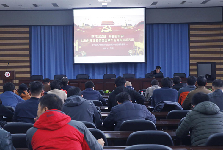 会上,纪委副书记、监察审计处处长国强作题为《学习新条例 展现新作为 以铁的纪律推动全面从严治党向纵深发展——中国共产党纪律处分条例专题辅导》的讲座。讲座从《中国共产党纪律处分条例》重新修订的重大意义、《中国共产党纪律处分条例》的主要内容、如何学习宣传贯彻落实好《中国共产党纪律处分条例》三个方面进行了详细解读。