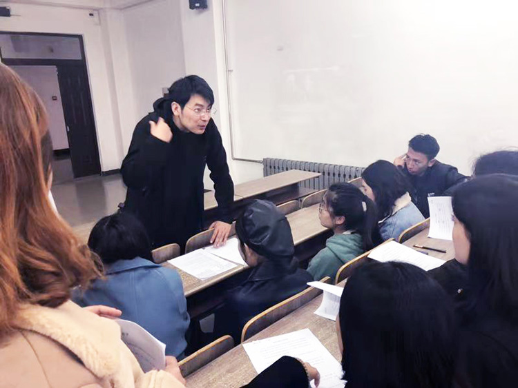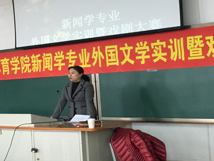 教师蔡晓楠主持实训活动 教师指导学生分组讨论现场 10月30日下午,管理与新闻传播学院2016级新闻学专业外国文学实训暨戏剧大赛开幕式在教学楼211教室举行。新闻教研室教师蔡晓楠主持活动,教师凡菲、刘斌出席开幕式并作现场指导。 开幕式上,蔡晓楠向同学们介绍了活动流程、戏剧表演的方法以及注意事项。活动期间,各组负责人纷纷上台向大家讲述剧本改编情况。三位教师针对剧本与表演中存在的问题进行了点评,并与同学们分享了自身感受与经验,同时向同学们推荐了优秀的话剧作品供同学们学习。 新闻作者:管理与新闻传播学院 蔡晓楠 责任编辑:朱翠立 新闻日期:2018-11-01 点击:次