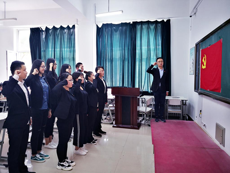 9月13日,管理与新闻传播学院学生第一、二支部举办新党员入党宣誓仪式。9名预备党员面向鲜红的党旗庄严宣誓。