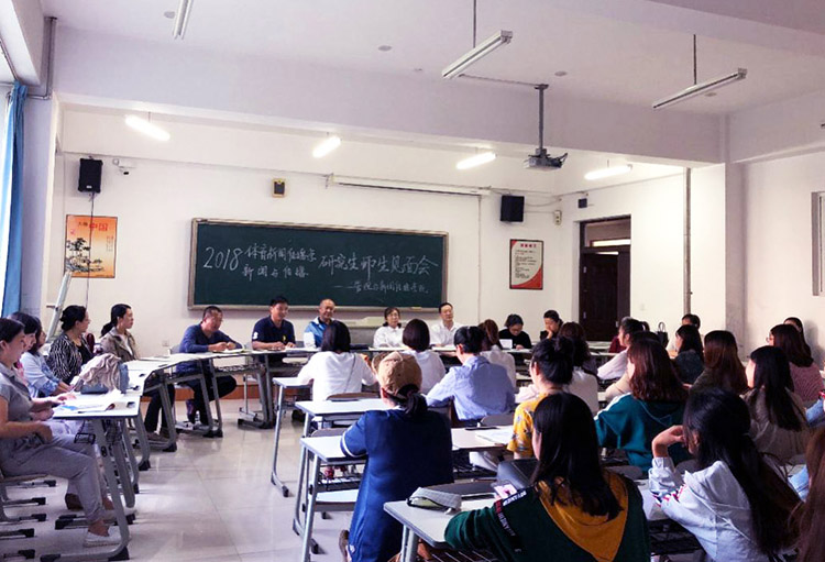 2018级体育新闻传播学、新闻与传播专业硕士研究生师生见面会现场 2018级体育管理学、公共管理专业硕士研究生师生见面会现场 9月11日、12日,管理与新闻传播学院分别举行了2018级体育新闻传播学、新闻与传播,体育管理学、公共管理硕士研究生师生见面会。 新闻导师组组长惠悲荷、管理学科带头人程文广分别主持了研究生师生见面会,逐一介绍了导师及授课教师的学历背景,授课内容、科研成果以及研究方向。硕士研究生也分别进行了自我介绍,并提出了自己对研究生学习生活的想法和计划。 新闻作者:管理与新闻传播学院 高萍 责任编辑:朱翠立 新闻日期:2018-09-14 点击:次