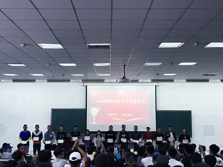 任命大会现场 为了进一步加强和改进大学生思想政治教育工作,提升大学生的综合素质,帮助新生尽快熟悉、适应校园生活,同时提高大二学生管理能力和自身修养,9月11日,运动训练学院积极响应学工部号召,在教学楼114教室组织召开了学长班主任任命大会,运动训练学院党总支副书记庞宏娜及2018级辅导员出席了大会。 会上,庞宏娜宣读了学长班主任名单,并颁发聘书;辅导员宁辰宣读了学长班主任工作职责;班主任代表作表态发言。 新闻作者:运动训练学院 刘诗辉 责任编辑:朱翠立 新闻日期:2018-09-13 点击:次