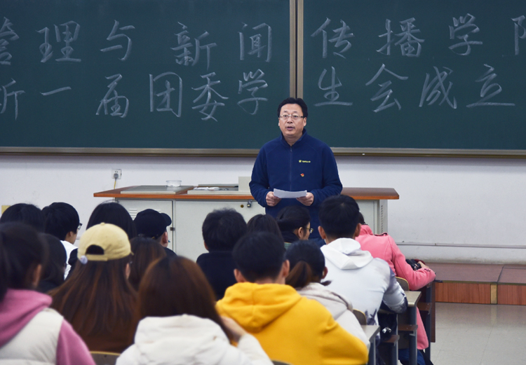 11月16日,管理与新闻传播学院召开新一届团委学生会成立大会,院长邹英,党总支书记张建波、党总支副书记高鸿雁出席,团委书记付江波主持大会。