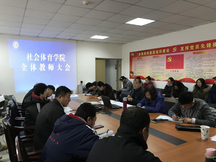 1月14日上午,社会体育学院在游泳馆二楼大会议室召开全体教师大会,党总支书记樊占平主持会议。
