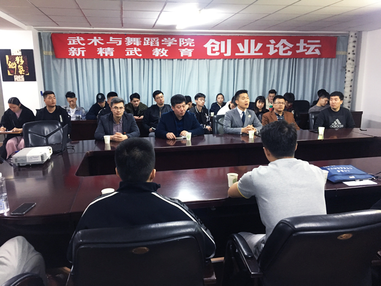 为提高毕业生自主创业能力,推动毕业生自主创业、优质就业工作深入开展,4月10日下午,武术与舞蹈学院与新精武教育培训创业论坛在武术馆二楼会议室举行。