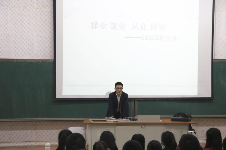 4月13日下午,运动人体科学学院优秀毕业生邱刚在112教室为学生作以“择业,就业,创业”为主题的分享会,运动人体科学学院院长衣雪洁、党总支副书记赵俊锋和辅导员共同参会。