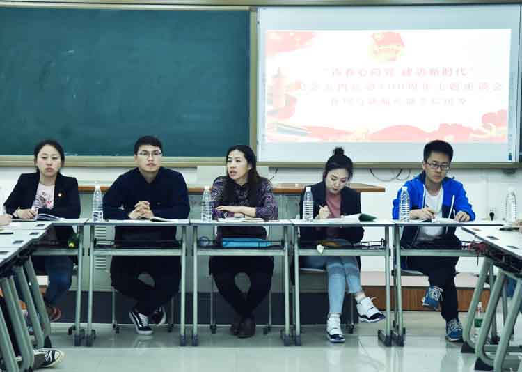 5月4日,管理与新闻传播学院在教学楼115教室召开“青春心向党,建功新时代”纪念五四运动100周年主题座谈会。党总支副书记高鸿雁和相关辅导员出席座谈会,党员、积极分子代表,各班班长、团支书和各年级主要学生干部64人参加本次座谈会。
