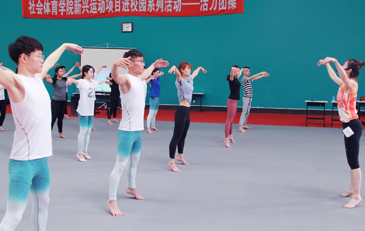 本次活动主要分为三个阶段,首先由培训部总监Kay进行Radical Fitness课程体系介绍,该体系包含12项目前市场上较为火爆的团操项目,既有动感十足的Fight Do、Top Rider,与器械相结合的Power、UBOND,也有舒缓塑形的OXIGENO等。接下来,学生体验了以格斗、搏击元素为主的Fight Do,以及融合了瑜伽、普拉提、芭蕾、太极诸多元素的OXIGENO。通过教练热情活力的引导,学生们很快融入其中,尝试了很多新鲜的运动方式。学生们表示,此次体验坚定了他们的专业信念,同时也为自身综合能力的提高指明了方向。