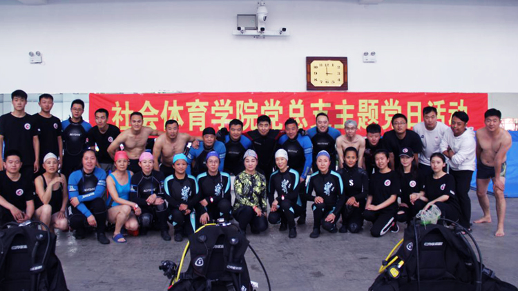 5月29日,社会体育学院党总支游泳党支部与学生党支部联合在游泳馆开展主题党日——潜水体验活动。参加活动的有社会体育学院党总支书记樊占平、副书记赵宁、游泳党支部党员、学生党支部辅导员和在潜水单位实习学生及我校参加体验活动的教职工。活动邀请沈阳大联潜水有限公司为我校教职工体验潜水运动提供技术指导。