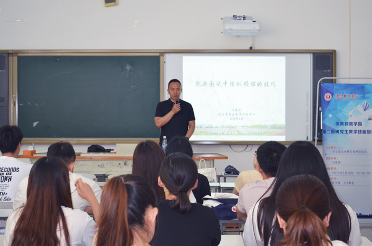 为提高研究生就业面试的能力,促进研究生专业素养能力的提升,6月12日,体育教育学院在教学楼115教室举办第二期研究生教学技能培训,邀请苏家屯教育研究中心教研员、高级教师冯维刚为2018级研究生作题为《就业面试中模拟授课的技巧》讲座,80多名研究生聆听此次专题讲座。