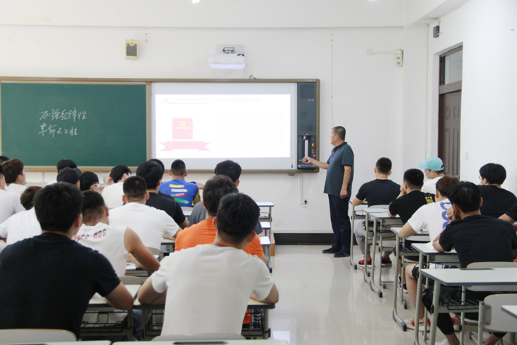 6月12日,社会体育学院党总支书记樊占平和副院长冯欣欣分别在教学楼213、114教室为社会体育学院2017级同学讲授形势教育课。