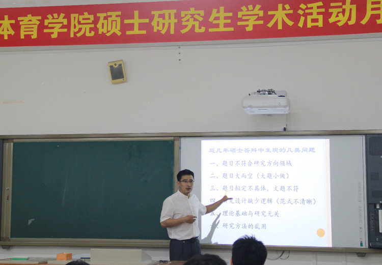 为提升硕士研究生的科研能力和学术论文的写作水平,社会体育学院在研究生学术活动月中举办了一系列的学术讲座。6月28日,休闲运动教研室方海明博士在教学楼115教室为研究生作了题为《研究生阶段如何选题、做研究设计和研究方法甄选》的讲座。