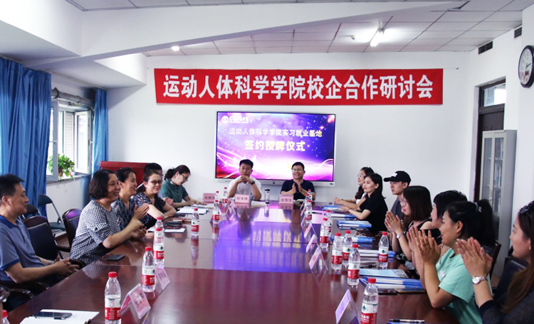 7月9日,运动人体科学学院在科技楼524会议室举办校企合作研讨会暨实习就业基地签约授牌仪式。看球吧