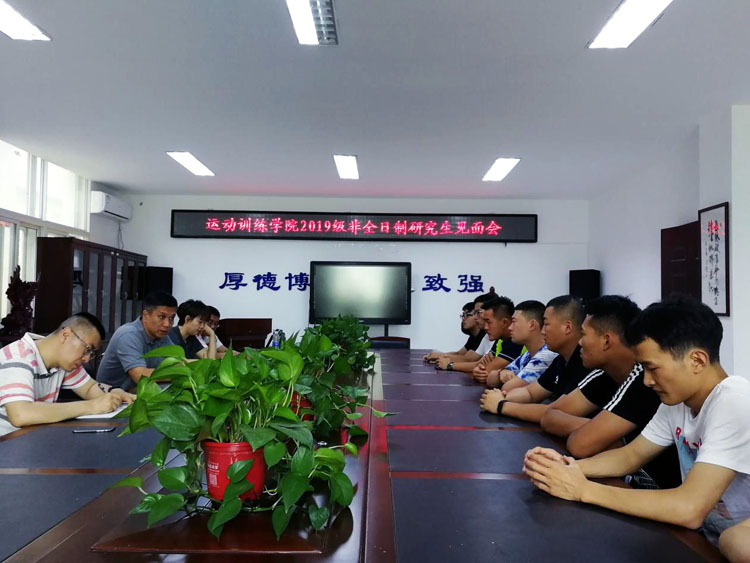 7月16日,运动训练学院在篮排球馆一楼会议室举行了2019级非全日制研究生见面会,运动训练学院副院长张麟寰、排球导师组组长付哲敏、足球教研室书记张宏家、运动训练学导师组组长马策、篮球导师组教师刘宁、冰雪教研室主任刘元国以及运动训练学院2019级非全日制研究生参会。