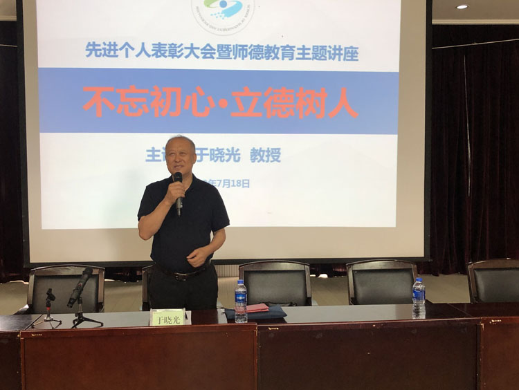 表彰会后,于晓光作了题为《不忘初心、立德树人》师德教育主题讲座。他结合自身从教经历,阐述了新时代高校教师的使命与担当,教师素质的培养与提高,强调了每位教师都要时刻保持正确的政治方向,努力做到为人师表、求真敬业、开拓创新,“不忘教书育人之初心,牢记立德树人之使命”,为学院全面提高人才培养质量做出新贡献。