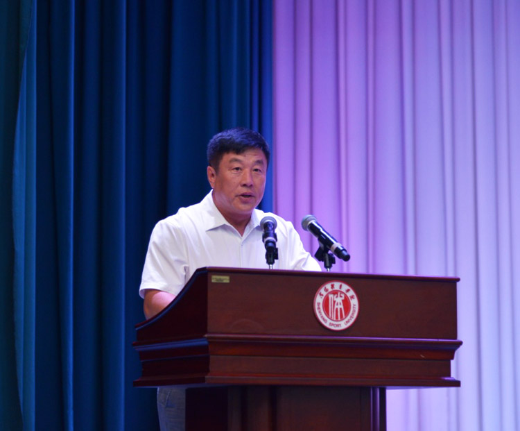 于树祥代表学院致欢迎辞,他对运动训练学院2019级新生的到来表示热烈的欢迎,并对他们即将开始的崭新大学生活致以诚挚的祝愿。希望新同学在未来的四年里树立远大理想、练就过硬本领,锤炼品德修为,积蓄专业知识,掌握专业技能,砥砺前行,放飞青春梦想。