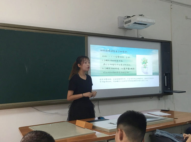 第三名分享人是张晓月。她提到了选导师的有关问题,她认为选导师要了解导师的研究方向以及教学风格。提出在学习上要多与导师、同学交流,在生活上作息要规律,珍惜每一天的时间,也要合理饮食、运动,做到劳逸结合。