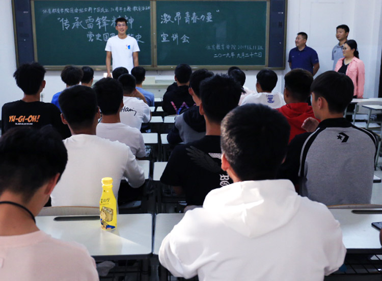 9月25—27日,体育教育学院团委开展“雷锋精神永驻校园”系列主题教育活动。活动主要进行三个专题,第一个专题为“传承雷锋精神,共建和谐校园”主题团日活动,第二个专题为“弘扬雷锋精神,坚定理想信念”主题演讲活动,第三个专题为庆祝中华人民共和国成立七十周年主题教育活动“传承雷锋精神,激昂青春力量”党史国史民族史宣讲会。体育教育学院党总支副书记王晓艳,分团委书记姜少英及相关辅导员出席。活动由学长班主任负责组织和开展,学院34个团支部近800名团员青年参加活动。