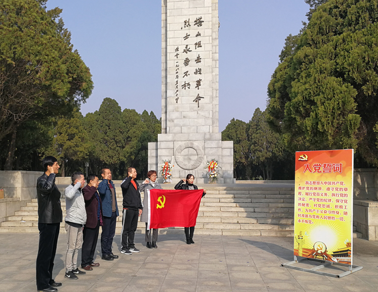 全体党员在塔山纪念馆前合影