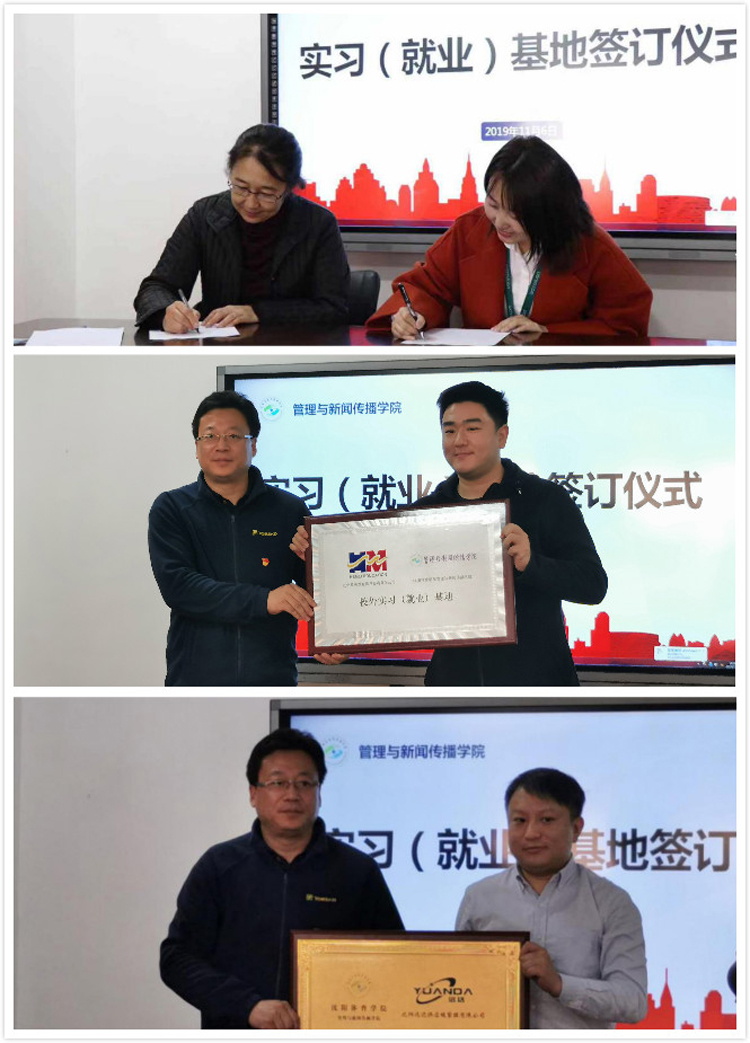 11月6日下午,管理与新闻传播学院校企合作实习(就业)基地签订仪式在学院党员活动室举行。沈阳链家宝业房地产经纪公司、沈阳远达供应链管理有限公司和辽宁赫美教育信息咨询有限公司三家企业代表和学院全体领导班子出席会议,各专业教研室主任、支部书记参会。签订仪式由副院长姚瑶主持。
