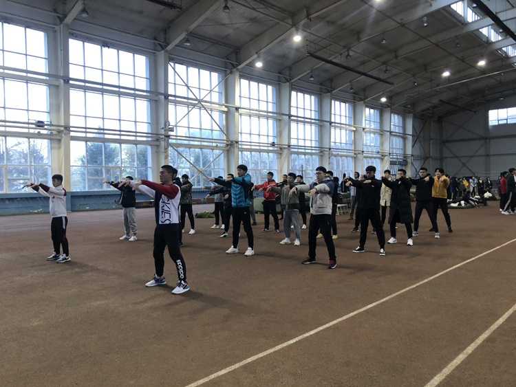 术科部分培训形式为利用早操时间,以班级为单位进行太极拳、广播体操、健美操、基本口令、花样跳绳等项目培训,由相关项目专任教师带领研究生助教以班级为单位逐一指导。