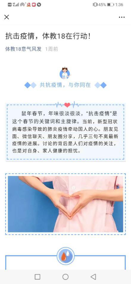 《致全校师生员工的一封信》发出之后,2月5日,体育教育学院向全院师生发出了共同抗击新型冠状病毒感染肺炎的倡议,倡议发出之后,体教全体学生如是说......