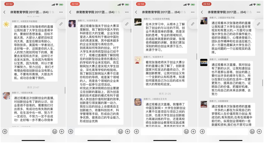 通过授课、答疑等环节,师生们对课程进行多角度、多层面的学习,达到了开拓视野、增长知识、提升能力的效果。青年教师郭鹏在培训结束后留言:“感谢学院组织的这次培训,让我对创新创业工作有了更加直观的认识,这让我对指导学生创新创业更有信心!”学生们也纷纷留言表示,会认真梳理学习笔记,将培训所学知识运用到实际中,有信心在老师的指导下,取得优异成绩。