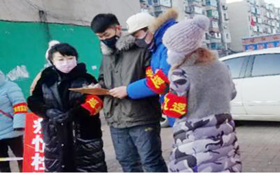 祝贺,体育经济与管理专业2017级学生,志愿服务于黑龙江省七台河市文苑社区,主要负责在社区管辖范围内,监督一家被隔离的粮店,确保无人进出。