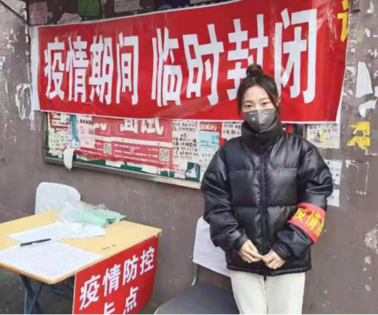 张楠在防控卡点值班