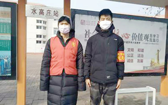 高屹林,网络与新媒体专业2019级一班学生,校看球吧影像部委员,在天津市西青区辛口镇水高庄村参与巡逻检查等志愿服务工作。