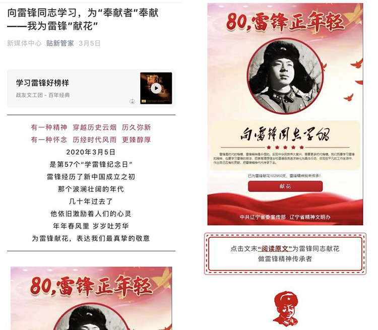 今年是雷锋同志诞辰80周年,是毛泽东等老一辈无产阶级革命家号召“向雷锋同志学习”57周年。在这全民战“疫”的非常时期,为了传承雷锋精神,践行社会主义核心价值观,管理与新闻传播学院积极响应共青团中央和中共辽宁省委宣传部的号召,用别样方式传承雷锋精神,用生动的实践践行雷锋精神。