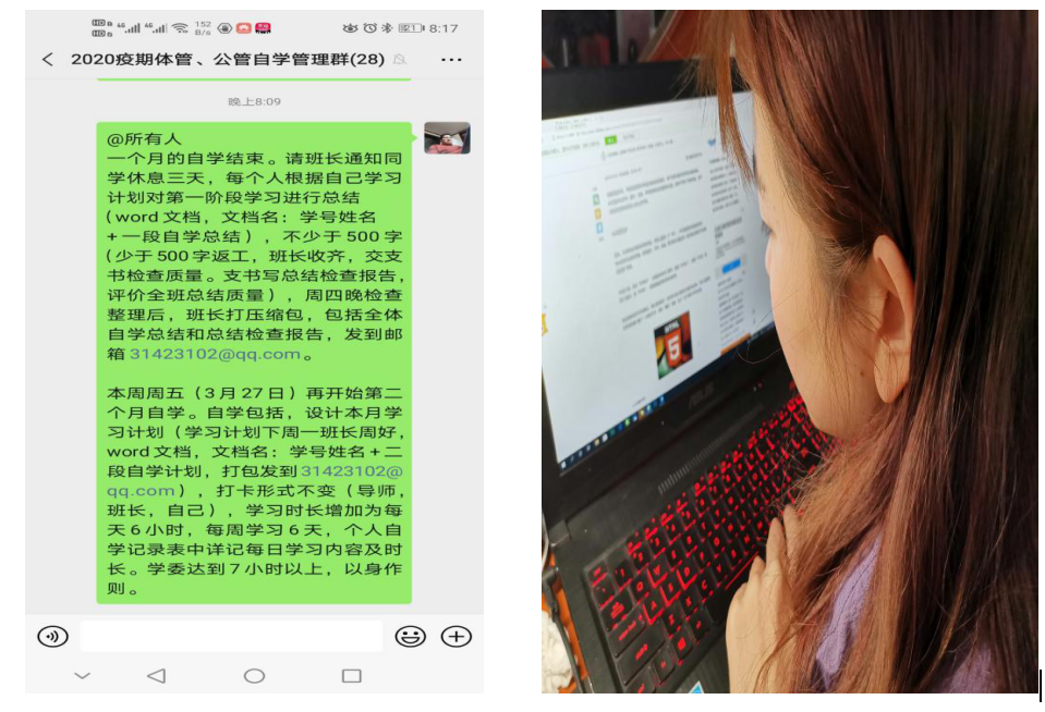 三月上旬学院全体学生有序开展网课的学习。师生普遍反映学习平台上课程内容丰富多彩、展现形式新颖独特、涉猎范围广泛全面,基本能够满足学生们的学习需求。各专业根据自身学科特点制定相关监督制度,建立学院、教研室、教师与学生四级管理体系,做到层层监督、互相促进,学习活动中师生不定期进行视频会议,创建多个QQ、微信专题研讨群,取得了较好的学习效果。