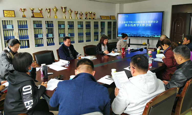 为全力做好2020版社会体育指导与管理专业、休闲体育专业本科培养方案修订工作,在定稿之前使全体教师统一思想、达成共识,社会体育学院于4月8日分别组织所辖教研室召开培养方案研讨会暨在线教学工作会议,受疫情影响,为避免人员过多,学院以教研室为单位召开会议,历时1天,会议由社会体育学院院长冯欣欣主持,社会体育学院党总支书记刘丙权及全体教师参会。