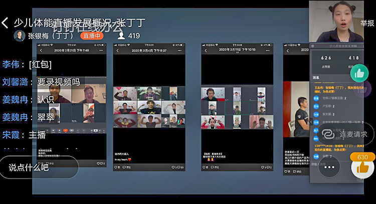 组织学生在线学习赫石少儿体能线上直播课堂——少儿直播体能教练公益培训项目。此次线上直播课程共分为三讲,每天一讲,主题为少儿体能直播行业发展概况,一堂优秀直播课的标准以及如何走进孩子的世界。分别由赫石少儿体能的张银梅,王志文,苗媛三位讲师主讲。学院400余人参与此次在线学习。