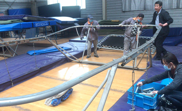 蹦床馆拆卸器材、清点零件