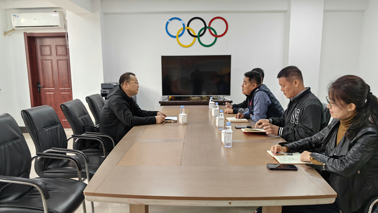 在调研座谈会上,邹芳宁汇报了附属竞技体育看球吧