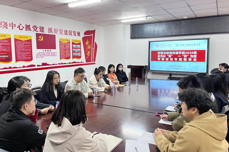 为了更好地帮助2020级考研学生准确把握复试方向,熟悉复试基本流程,提升学生复试心理素质。3月23日晚,管理与新闻传播学院在教学楼510会议室召开全力以“复”一“研”为定考研复试专题指导会,会议由2020级辅导员黄业荥主持,管理与新闻传播学院第一届研究生自治会成员、2020级考研学生参加本次会议。