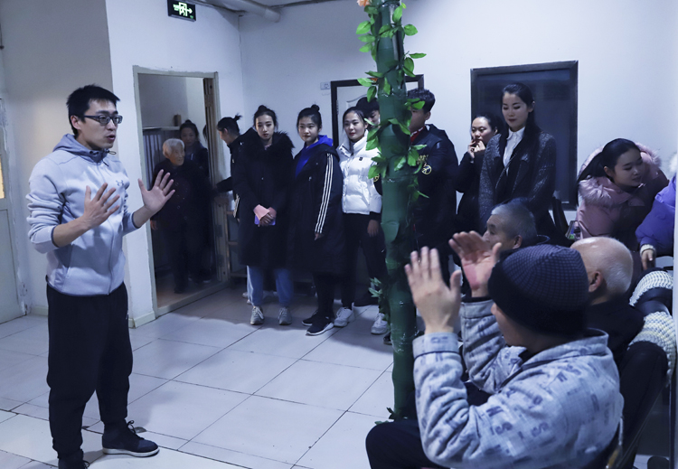 为全面贯彻党的十九大精神,充分发挥教职工专业技能优势,服务社会,服务群众,12月19日,校工会副主席辛力、武术与舞蹈学院党总支书记刘振强带领武术与舞蹈学院部分教师、学生前往志愿服务基地“索佳爱心敬老院”开展献爱心服务社会活动。