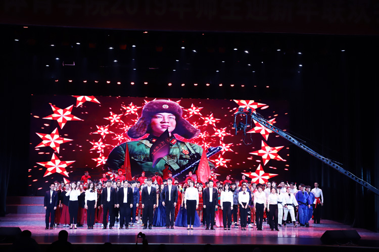 而将晚会气氛推向鼎盛的是,伴随着学生们一路成长的辅导员老师们集体登台带来的大合唱《相信我们会创造奇迹》,他们面对全校师生许下的庄严誓词,更是引起了全场的共鸣。瞬间,现场化作了一篇星光的海洋,学生们用他们的手机光束照亮了台上的笑脸,也用他们的热情和呐喊声温暖了整个沈体的冬天。最后晚会在激情的校歌声中圆满落幕。