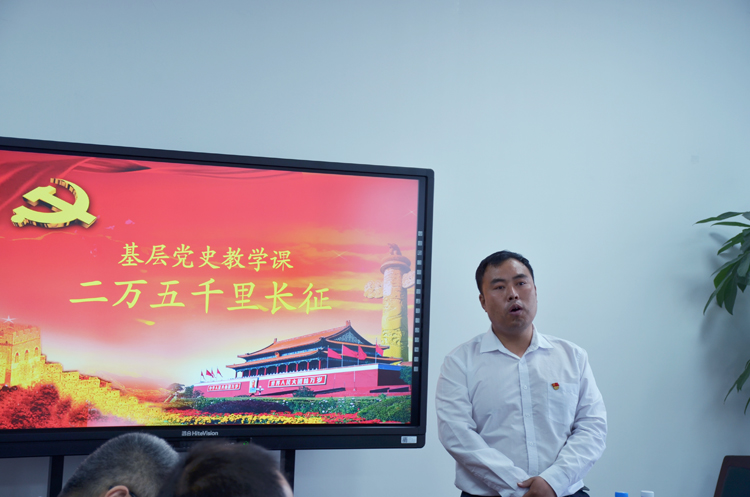 授课中,祖文清以《二万五千里长征》为题,讲述了从1931年“九一八事变”开始直至1935年10月中央红军胜利到达陕北与陕北红军刘志丹部会师期间的重要事件,他用生动的语言、鲜活的历史图片和视频资料,不断向全体党员传递着“长征精神”的可贵,正是这种中华民族百折不挠、自强不息的民族精神,保证了我们革命和建设事业从弱小走向强大的精神力量。