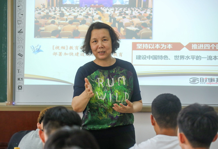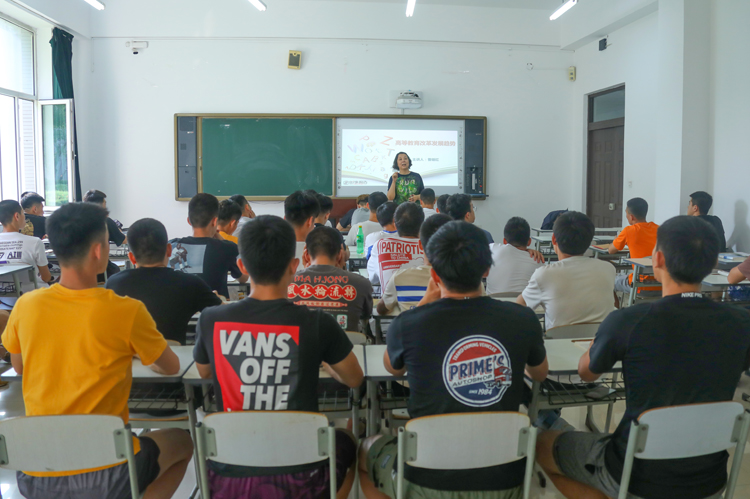 党委关于领导干部上讲台的工作安排,6月25日下午,副院长曹继红为体育教育专业2018级9班、10班学生讲授了一堂题为《高等教育的发展趋势》的形势与政策课。