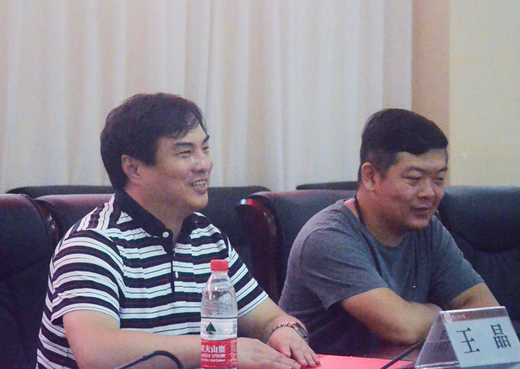 南通铁人运动用品有限公司副总经理王晶(左一)讲话