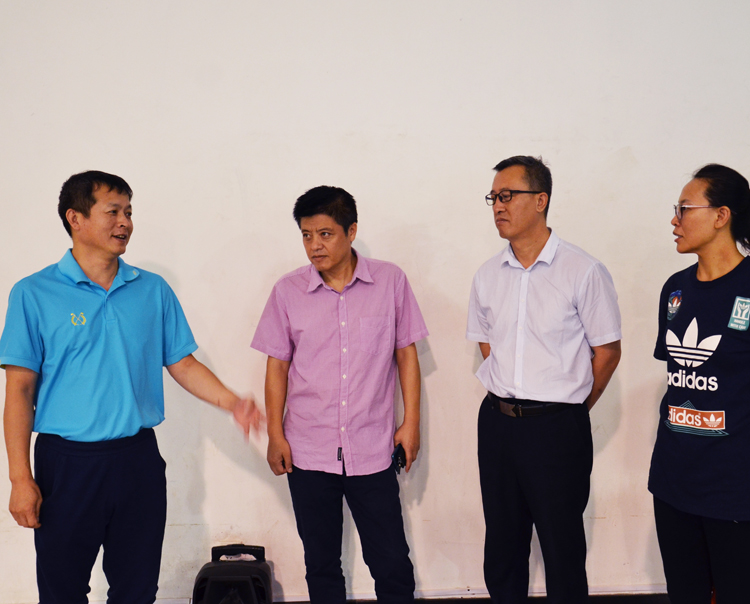 第十一届全国民族运动会将于9月8日在河南郑州开幕,我校将代表辽宁省参加板鞋竞速、高脚竞速、押加、民族健身操、表演(花式跳绳)及驻停表演等项目。8月17日,辽宁省民宗委副主任赵瑞,辽宁省民宗委文教处处长刘岩、处副处长刘成成,省体育局群体处调研员冯峪,沈阳市民宗局副局长曹政东,沈阳市民宗局经济社会事业处处长张云国等一行8人在竞训处处长孟春媛的陪同下来我校视察。