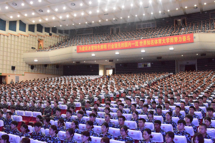 2019级新生军训开营式在大学生会堂举行,看球吧