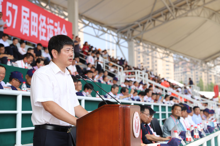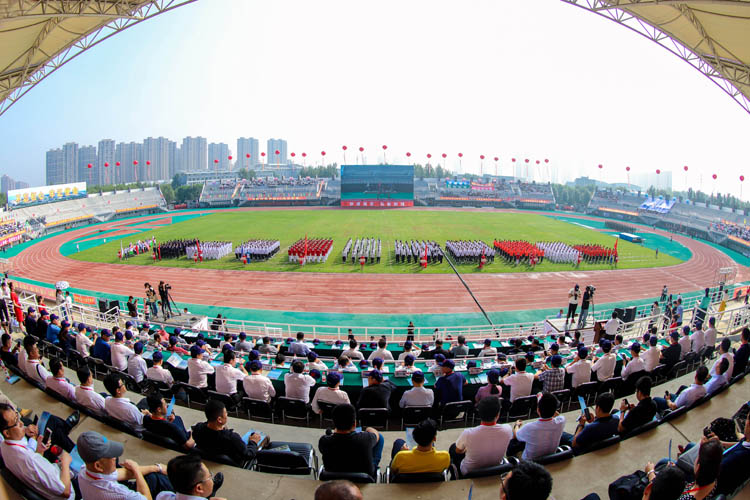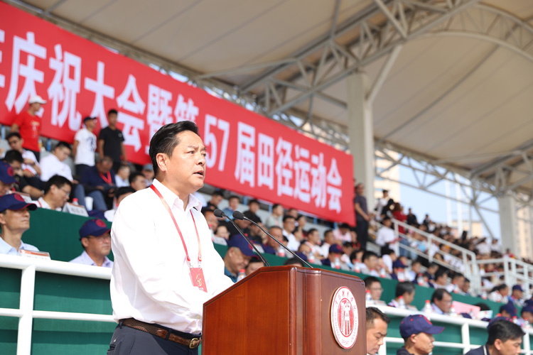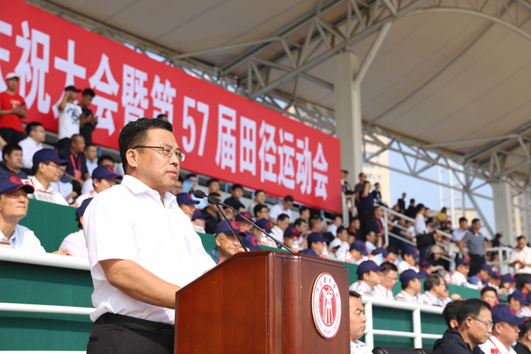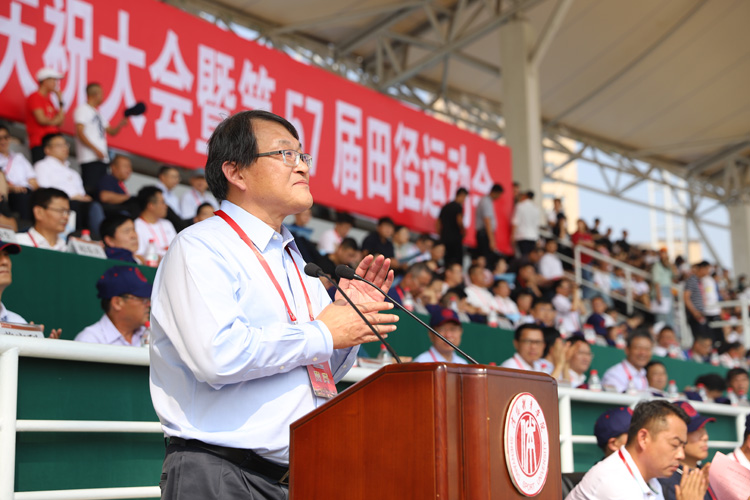 建校65周年庆祝大会暨第57届田径运动会开幕式在田径场举行。各级领导嘉宾应邀出席并在主席台就座,万余名在校师生和校友团坐在看台四周。场内一条条巨条标语,一个个高悬的彩球,表达着沈体师生对祖国、对母校的祝福。