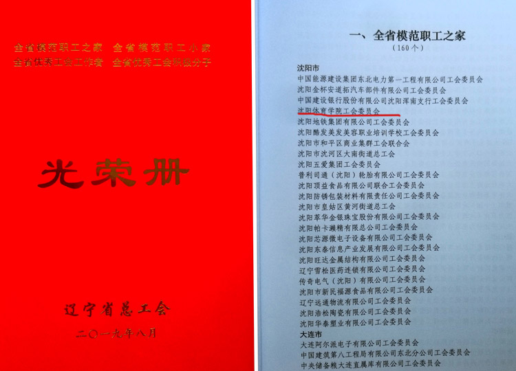 近日,辽宁省总工会下发《关于表彰全省模范职工之家、全省模范职工小家、全省优秀工会工作者和命名全省优秀工会积极分子的决定》,我校工会荣获“辽宁省模范职工之家”荣誉称号。 辽宁省模范职工之家评选是工会系统为表彰先进,树立典型,示范带动全省各级工会建设的重要举措。本次评选经过基层工会申报,市教科文卫工会推荐,省、市总工会审核研究,最终确定沈阳市24个基层工会委员会为“辽宁省模范职工之家”,我校工会是沈阳市高校唯一获此殊荣的单位。 新闻作者:工会 李亚轩 责任编辑:朱翠立 新闻日期:2019-09-27 点击:次