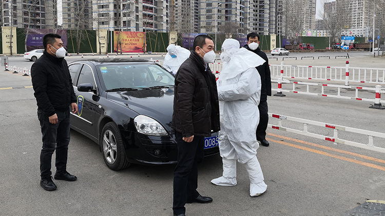 保卫处对疫情防控第五督导组成员进行登记和体温测量