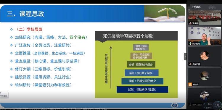 邀请西南大学教务处处长、教育部教学评估专家吴能表教授为全校教学管理人员作了题为《基于OBE理念下的课程设计与课程思政》的直播授课培训。教务处、各二级学院(部)相关教学管理人员参加培训。
