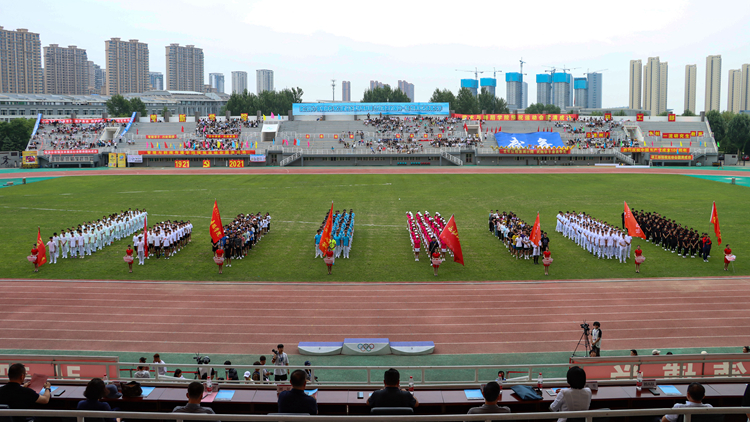 第五十八届田径运动会开幕在田径场举行。看球吧